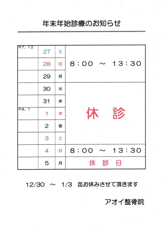 トップページ>お知らせ>12月(年末年始)診療のお知らせ